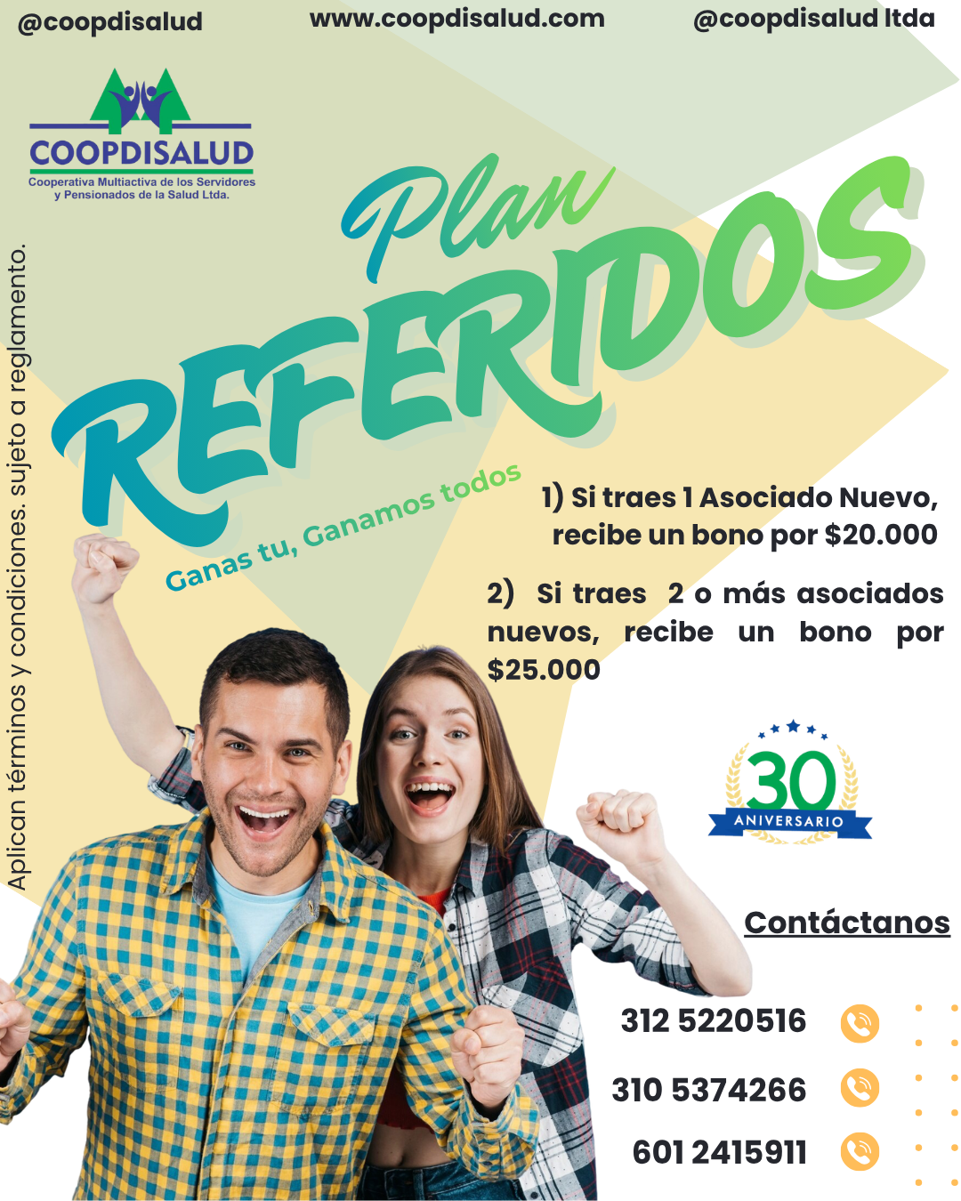 Soy asociado de la Cooperativa hace 29 años, la cual me parece una cooperativa muy sólida, una entidad donde se preocupa por sus asociados y por el bienestar económico, da muy buenas tasas al adquirir los préstamos el tiempo para cancelar es asequible tiene y muy buenas opciones de crédito, por lo cual recomiendo personalmente a esta entidad para que formemos parte de ella. Coopdisalud es una entidad donde su primer interés es el beneficio de sus asociados. La recomiendo.
